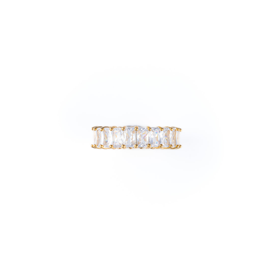 Details: Pave Swarovski Crystals Accented Baguette cut CZ's Gold finish over Brass Adjustable Size 1/16"...