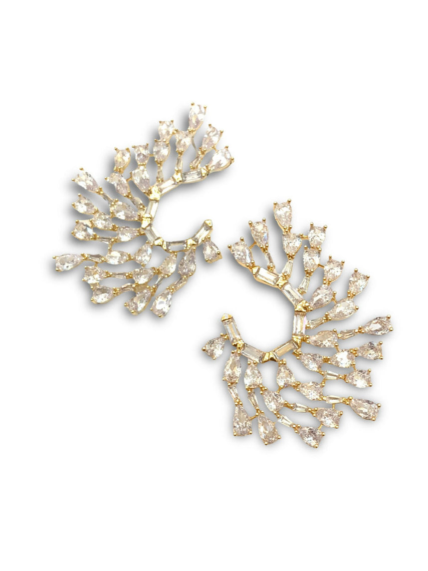 Details: Front-facing statement hoop earrings in hand set high quality pear and baguette cut CZ...