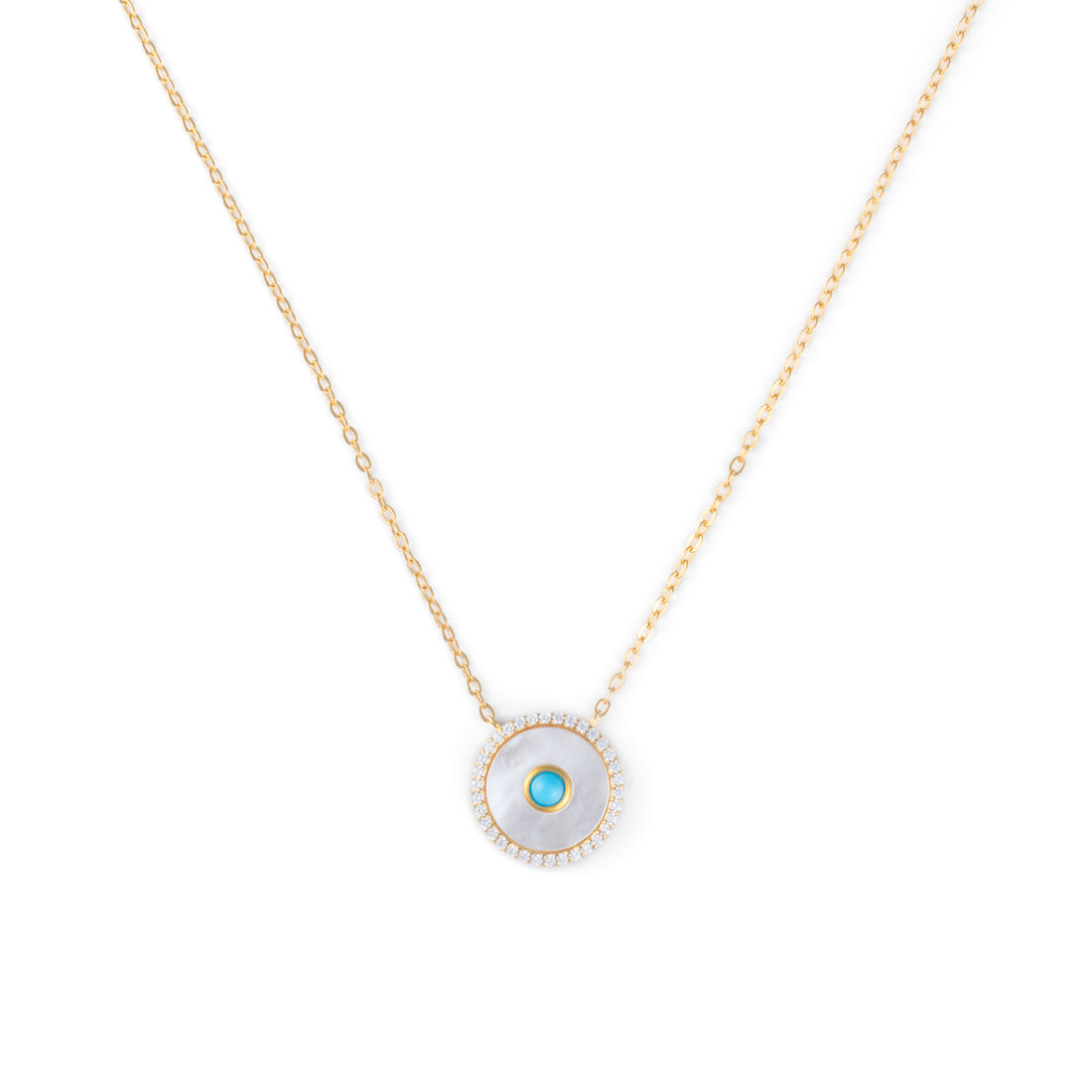 Details: -Sterling Silver with gold plating -Mother of Pearl Natural Stone Center -Pave Cubic Zirconia...