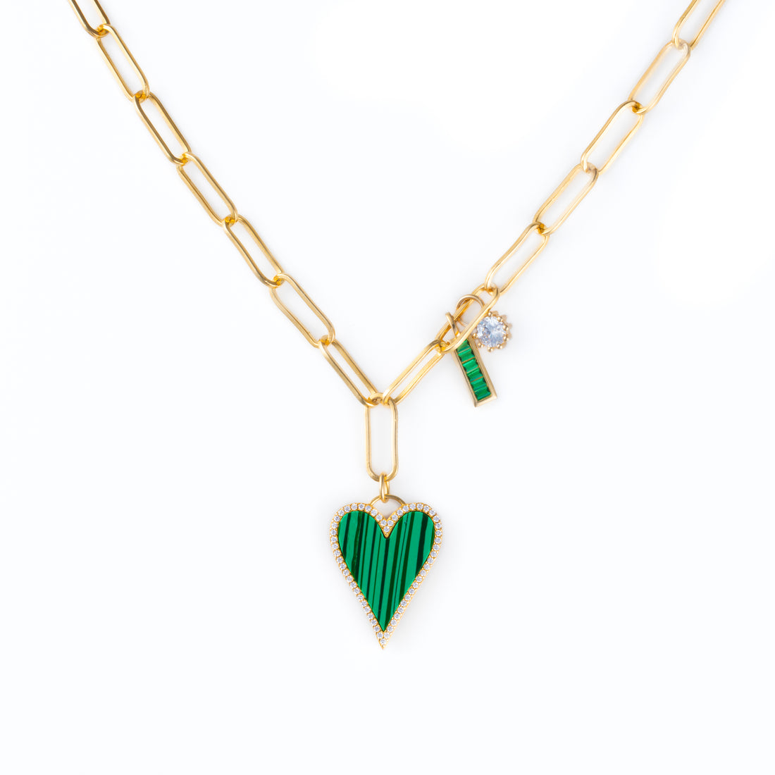 Large heart necklace with hand set high quality CZ and gold finish Details: High quality...