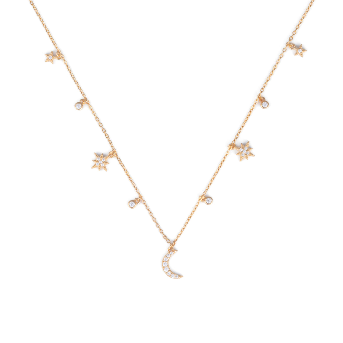 Details: Large moon necklace in hand set high quality CZ Features: High quality CZ clear...