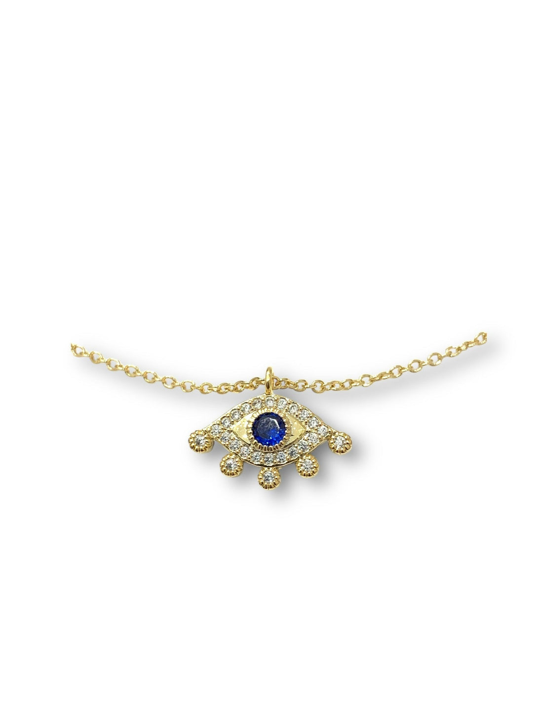 Details: -Mati short necklace with hand set high-quality CZ and Enamel accent -Gold finish over...