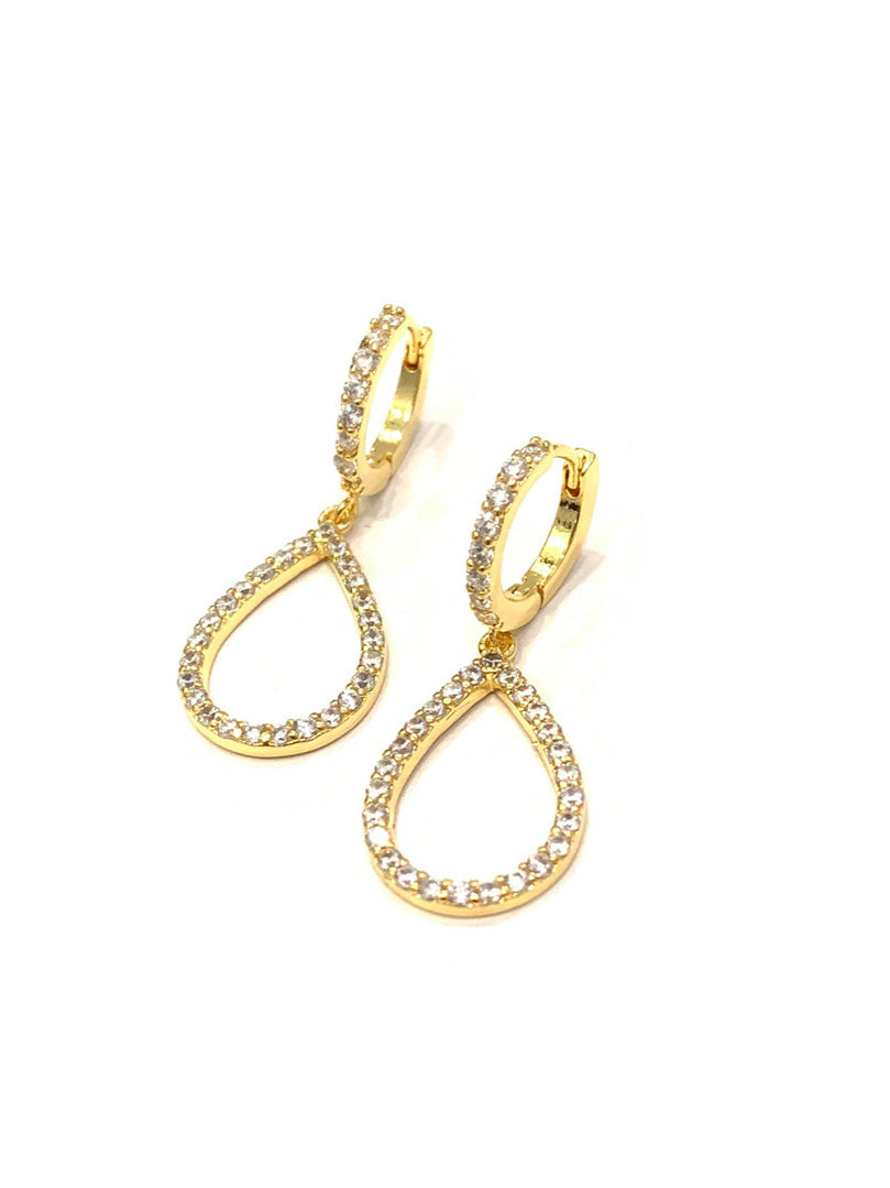 Details: Petite huggie and teardrop earrings with hand set high quality CZ, Gold finish Features:...