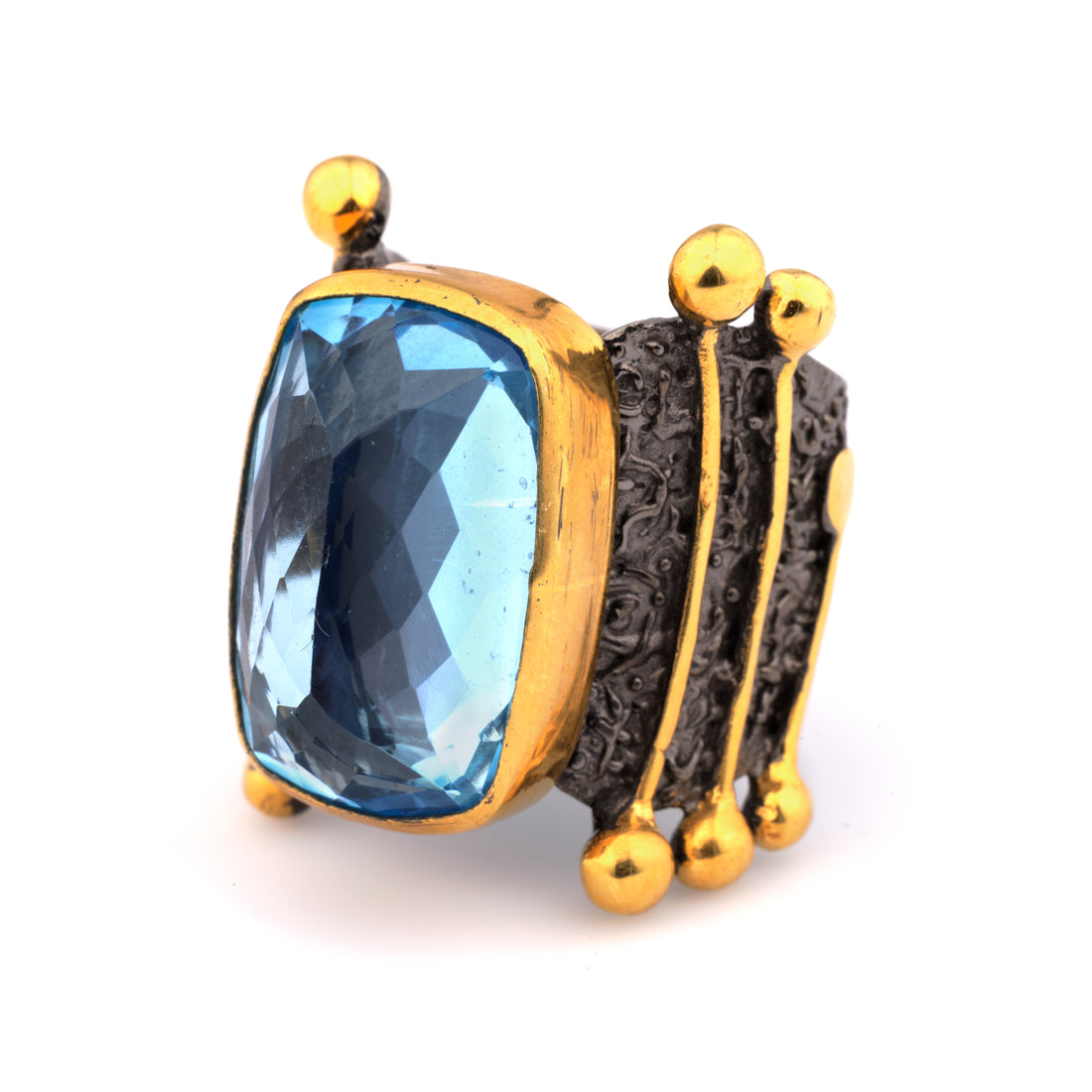 Details: -925 Sterling Silver with Gold Plating and Black Rhodium -Stone: Blue Topaz -Made in...