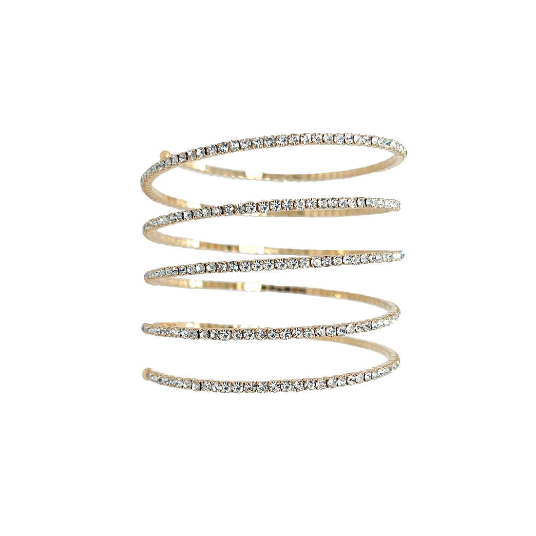 Details: -Yellow Gold Plated -Pave CZ 5 Row Elastic Bangle Bracelet -0.45" Wide -Made in...