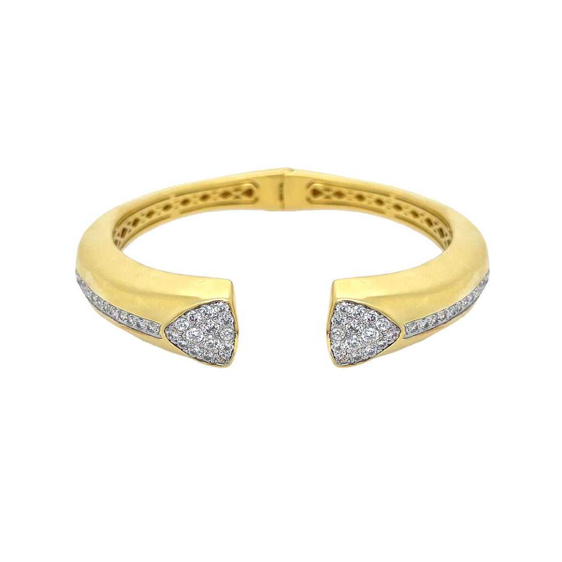 This stunning mixed metal gold bangle features a sophisticated design with intricate woven patterns and...