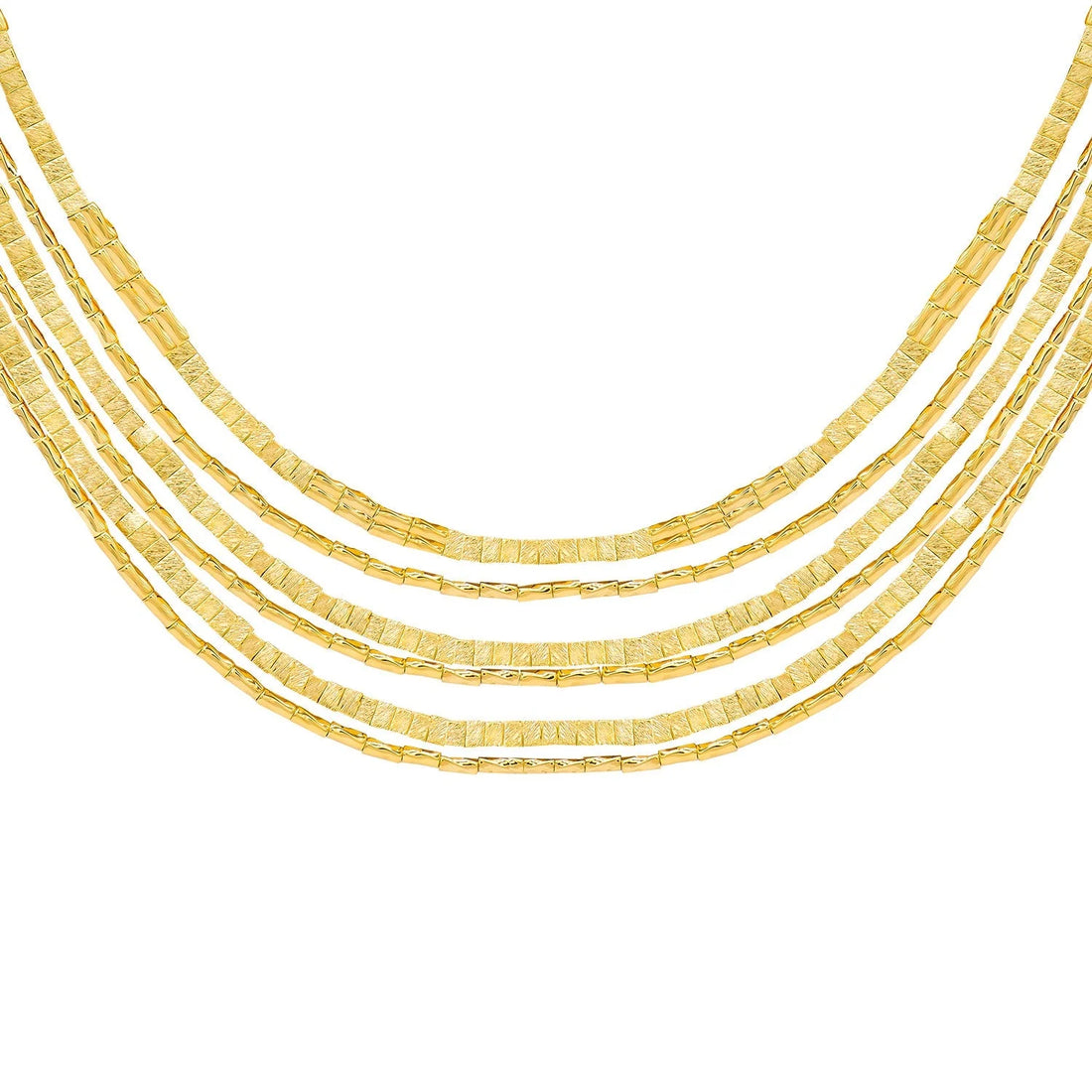 18K Gold Plated necklace with layered strands of small square beads attached with a magnetic...