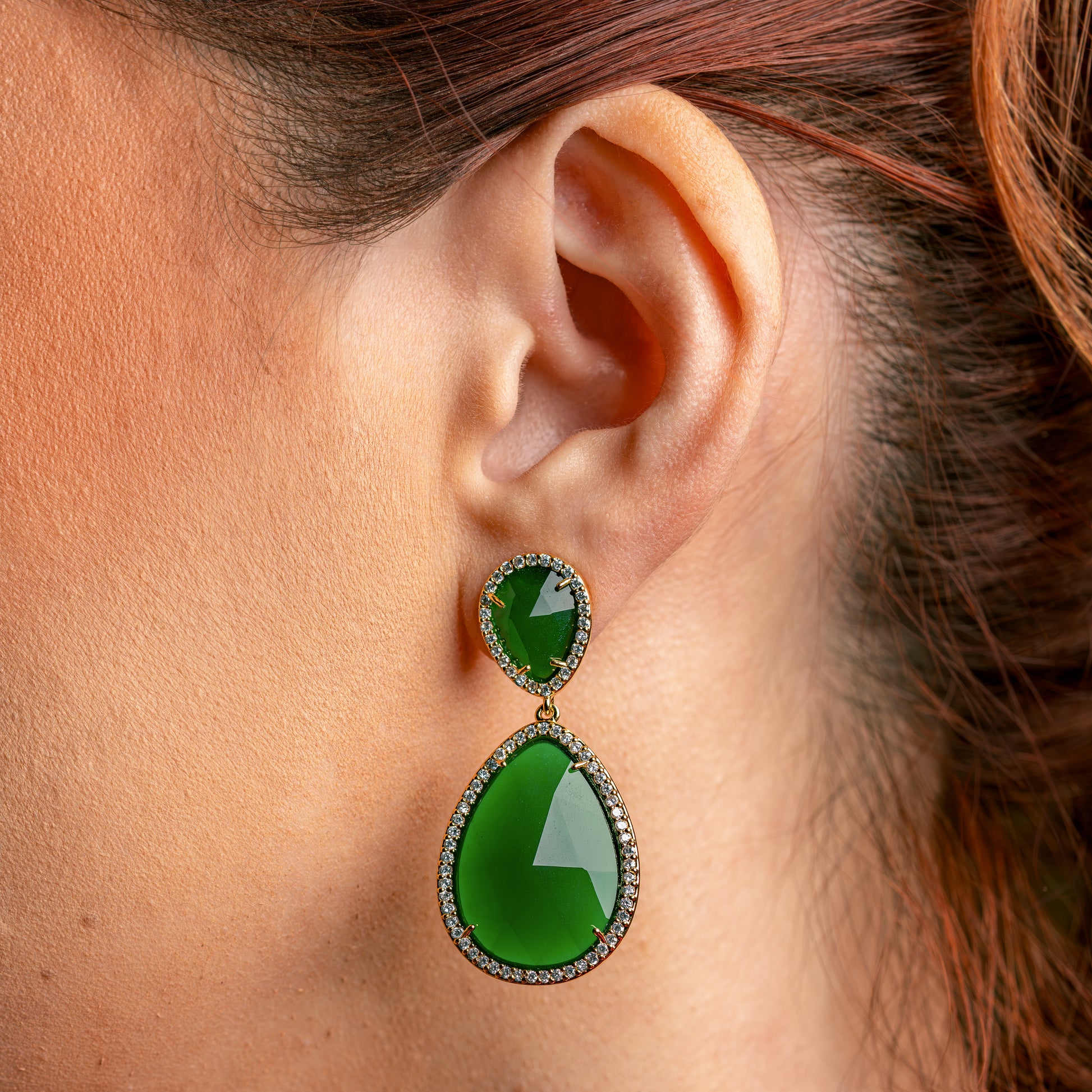 Details: Bella double tier halo drop earrings in Jade and hand set
