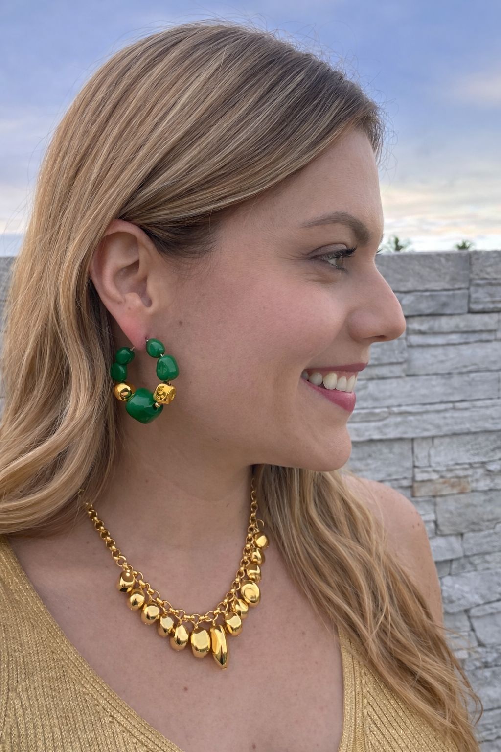 Chic and modern cabochon style necklace. The suspended elements catch the light with every movement in the fine links which provide a fluid and luminous elegance.
