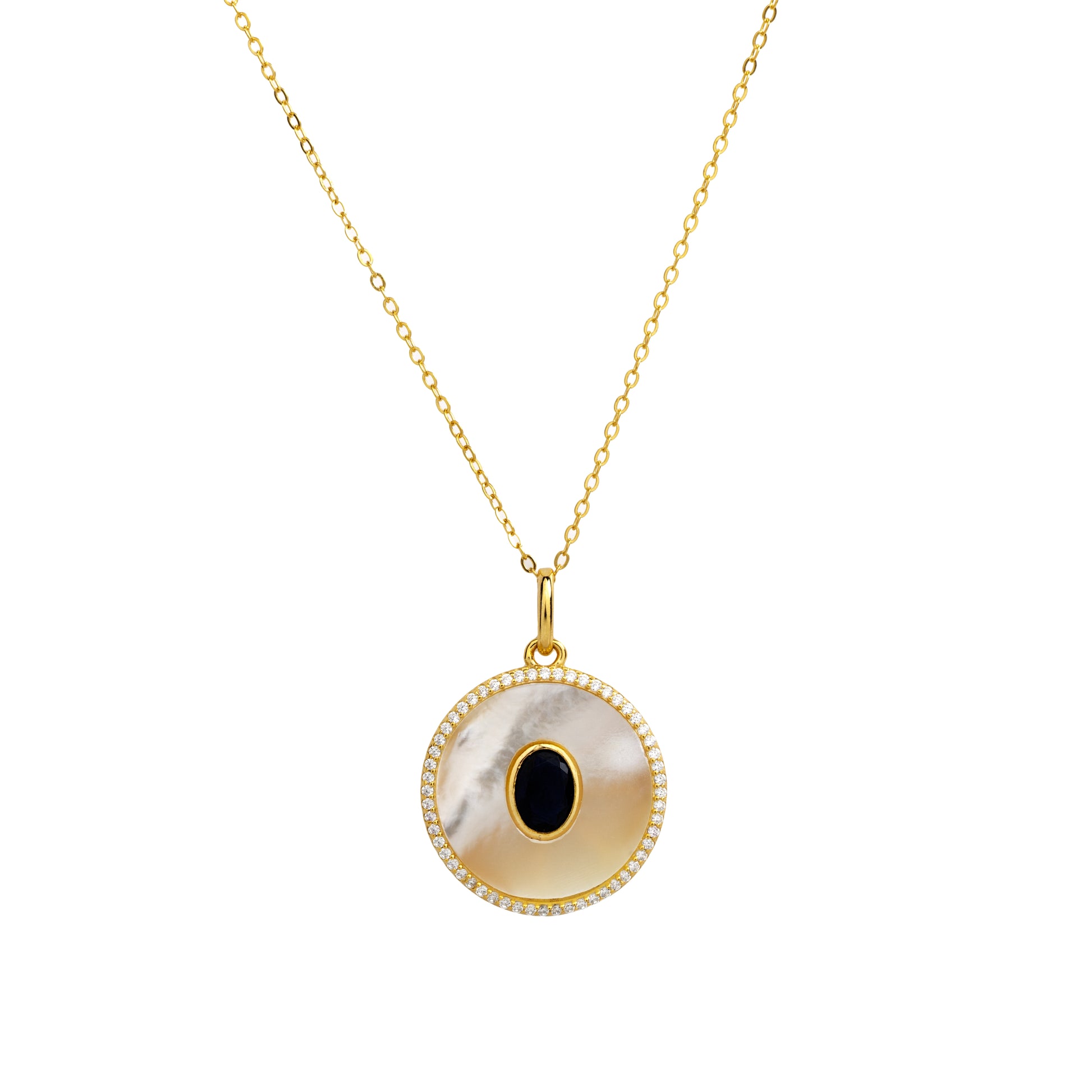 Adorn yourself with the captivating Circular Stone Pendant Necklace. Featuring a beautifully crafted circular pendant with a stunning stone centerpiece, this necklace effortlessly blends simplicity with elegance. Perfect for adding a refined touch to any outfit, day or night.