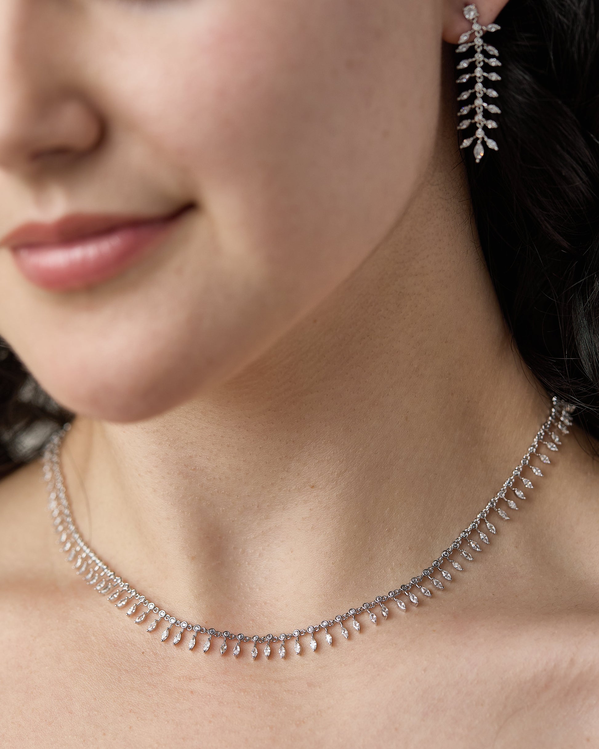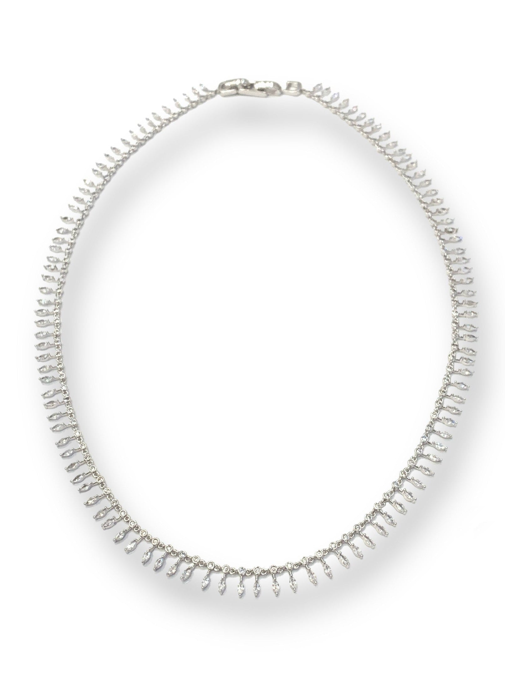 Details: Short delicate statement necklace with marquise and round cut hand-set high quality CZ's