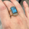 Gold Emerald Cut Labrodite & Crystal Cocktail Ring