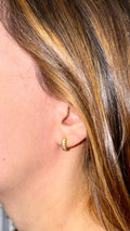 Details: Petite Huggie Earrings with 6 channel set high quality CZ's and ball accents with gold / silver finish