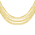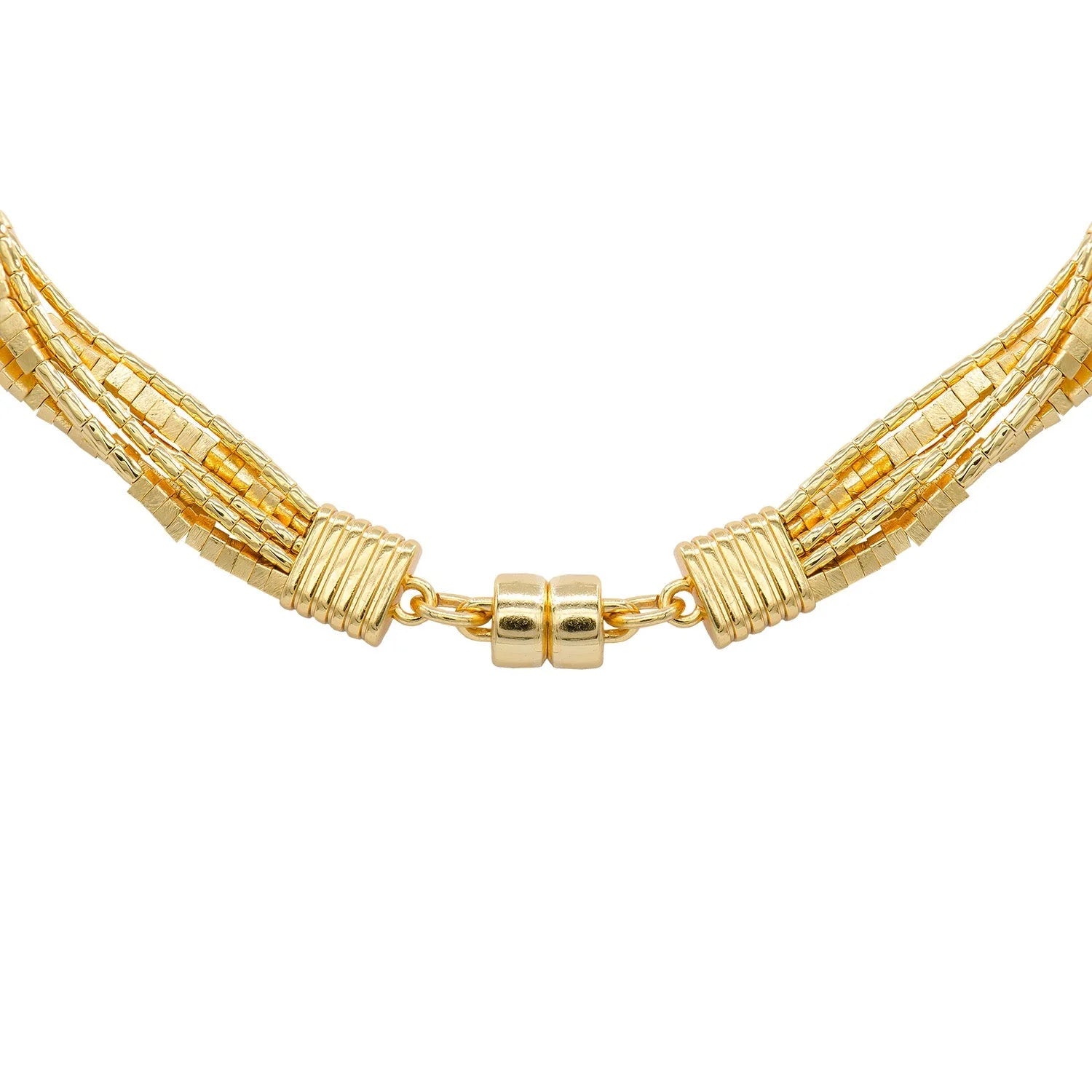 18K Gold Plated necklace with layered strands of small square beads attached with a magnetic closure.