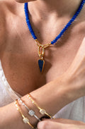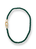 Semi precious short necklace with charm holder in hand set high quality CZ, and Gold finish. Great to wear solo or with many charms attached.