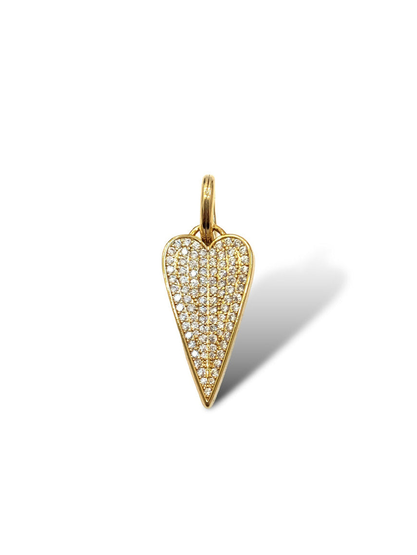 Included: Big heart charm with large bail in hand-set high quality CZ, Gold finish, Clear