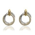 Details: These eye-catching earrings feature a sophisticated blend of hammered and smooth 14K gold and sterling silver plated circles, creating a layered, dimensional look. A round row of pave crystals adds a touch of sparkle, while stainless steel posts with custom logo silicon center backs ensure a secure and comfortable fit. The lightweight, teardrop design measures just over 1" in total length—perfect for day-to-night elegance.