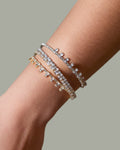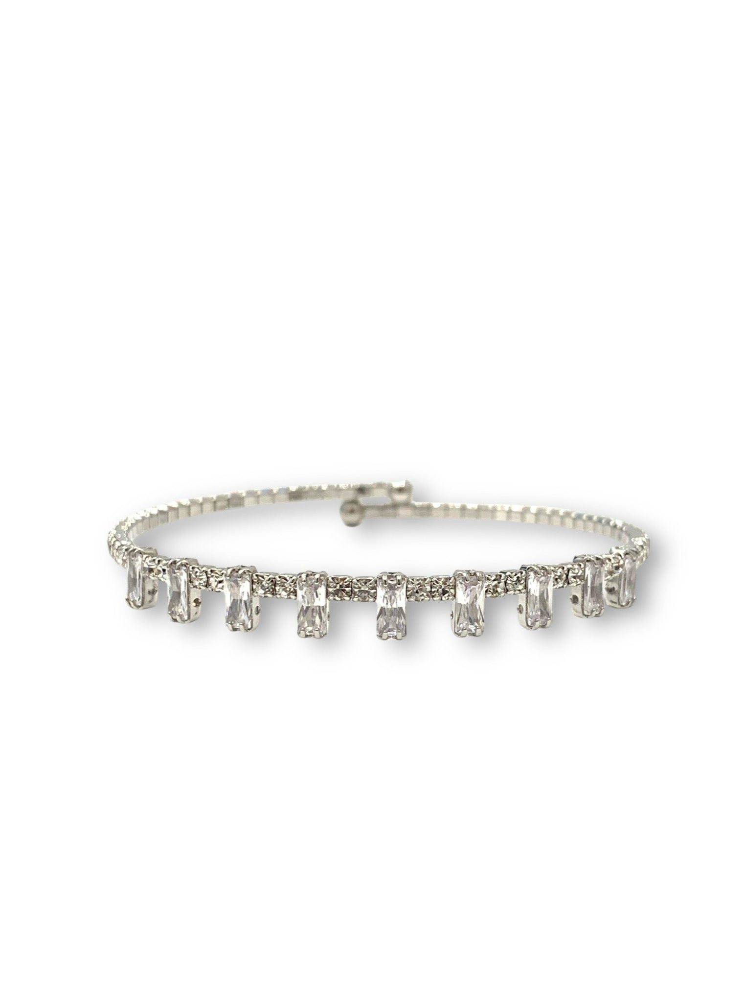Details: Flexible bangle bracelet with nine baguette pave crystal accents in high quality CZ & Gold / Silver finish