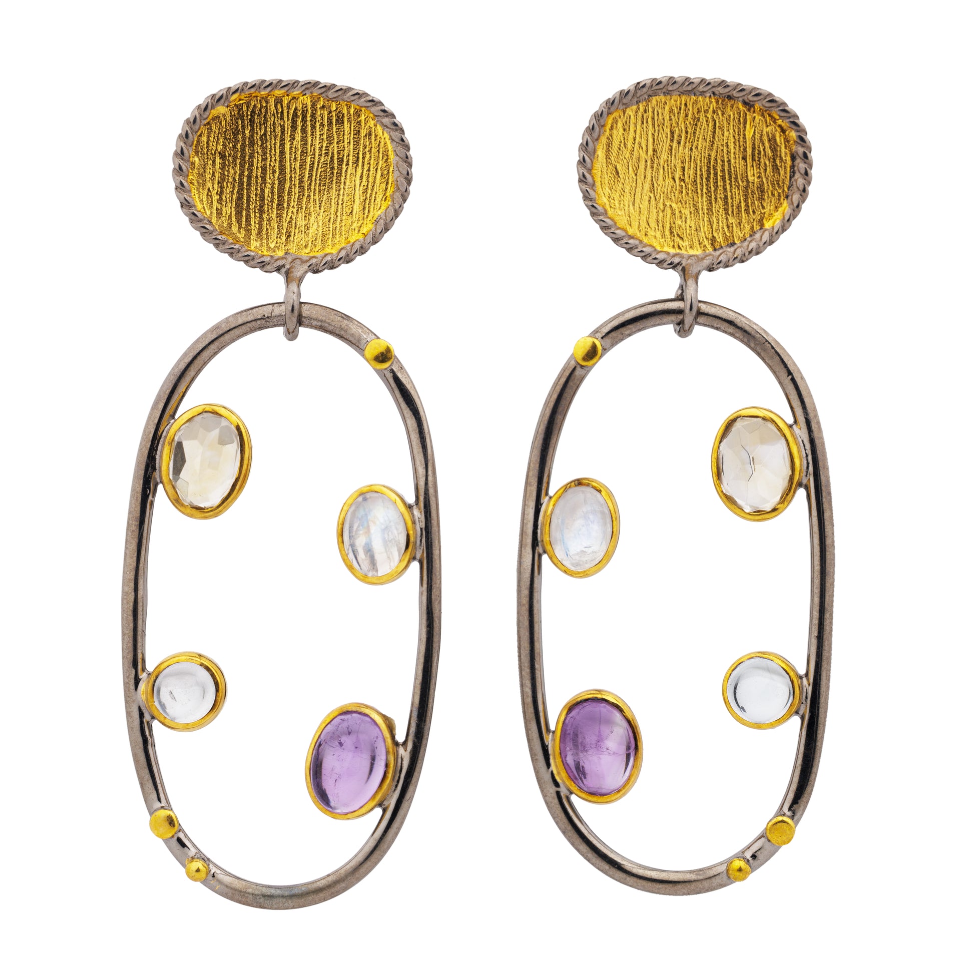 -Natural Stones: Moonstone, Blue Topaz, Amethyst