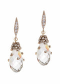 Details: Earrings accented with pave crystals and rock Swarovski crystal drop and an antique gold finish